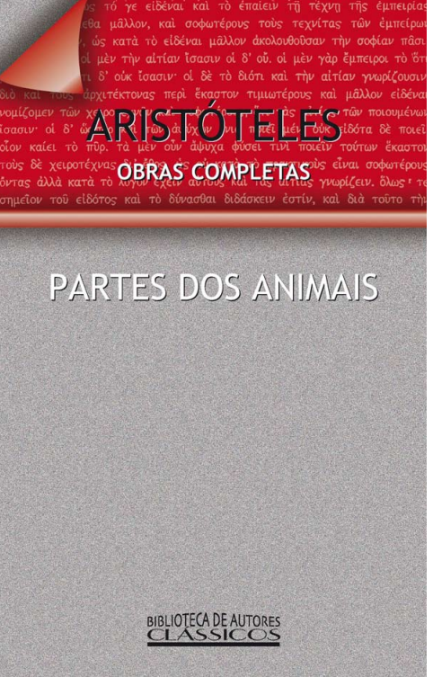 Sumário: Nesta obra fundamental da biologia antiga, Aristóteles analisa as diversas partes dos animais, classificando suas funções e estruturas com base em observações empíricas e em sua teoria das quatro causas. Ele argumenta que nada na natureza é feito em vão, e que cada órgão ou característica possui um propósito determinado, revelando uma ordem racional subjacente ao mundo vivo. Partes dos Animais representa uma tentativa pioneira de compreender a anatomia e a fisiologia animal não apenas descritivamente, mas filosoficamente, relacionando forma, função e finalidade em um sistema coerente.