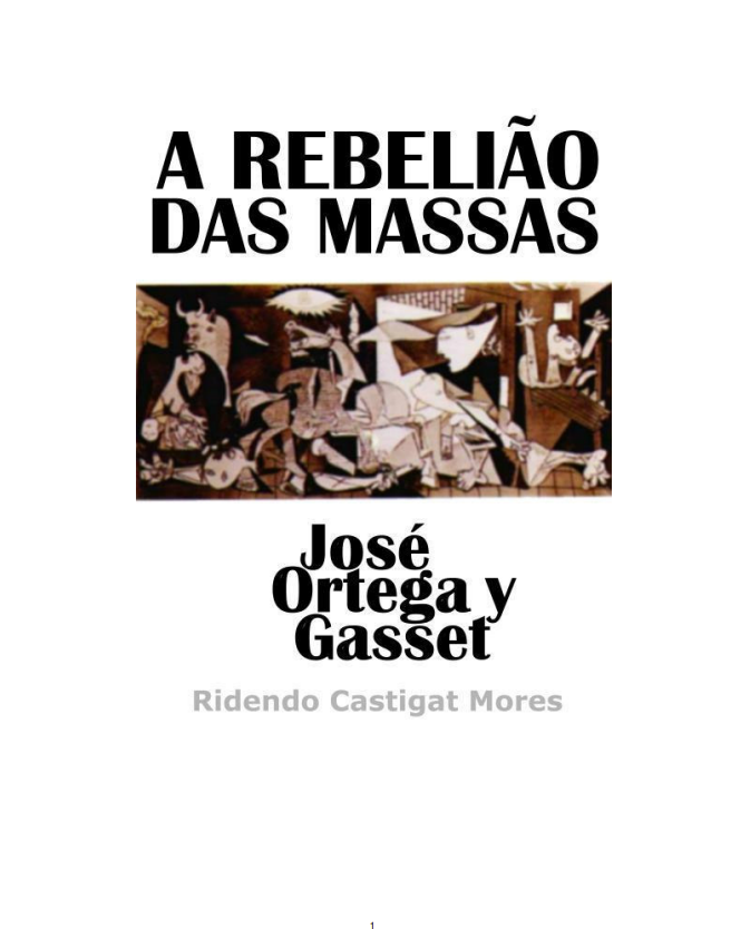 Referências bibliográficas (ABNT): ORTEGA Y GASSET, José. A rebelião das massas. Tradução de Herrera Filho. Edição eletrônica: Ed. Ridendo Castigat Mores. Disponível em: http://www.ebooksbrasil.com.