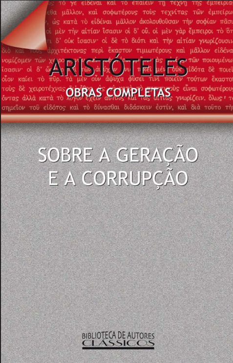Referências bibliográficas (ABNT): ARISTÓTELES. Sobre a geração e a corrupção. Lisboa: Imprensa Nacional-Casa da Moeda, 2009.